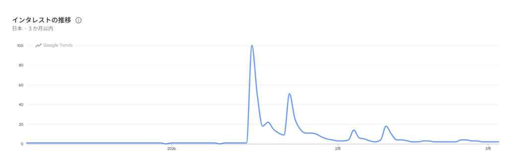 不祥事発覚後の1月半ばから「プルデンシャル生命」のGoogle検索数が急激に増えています。
